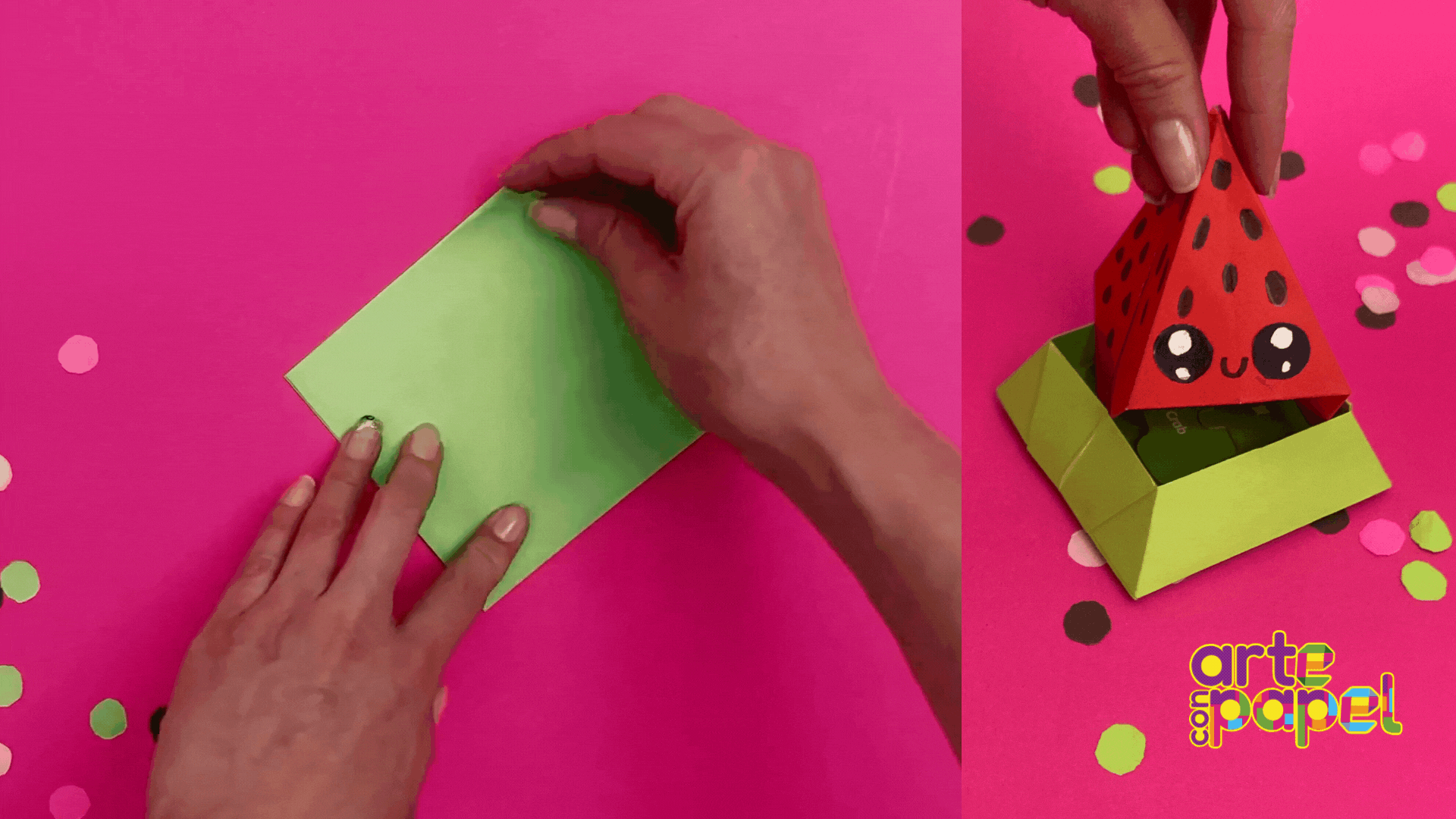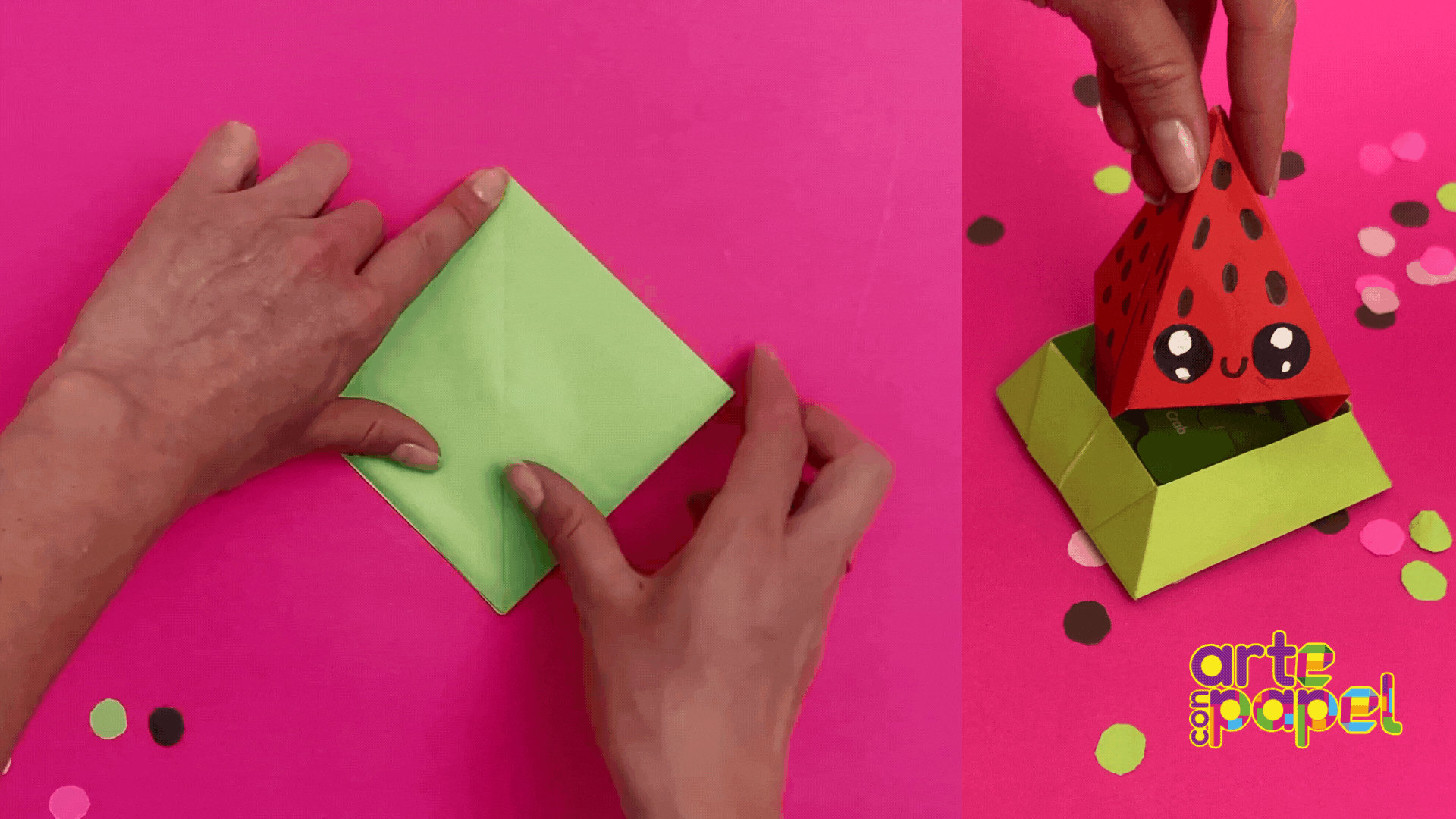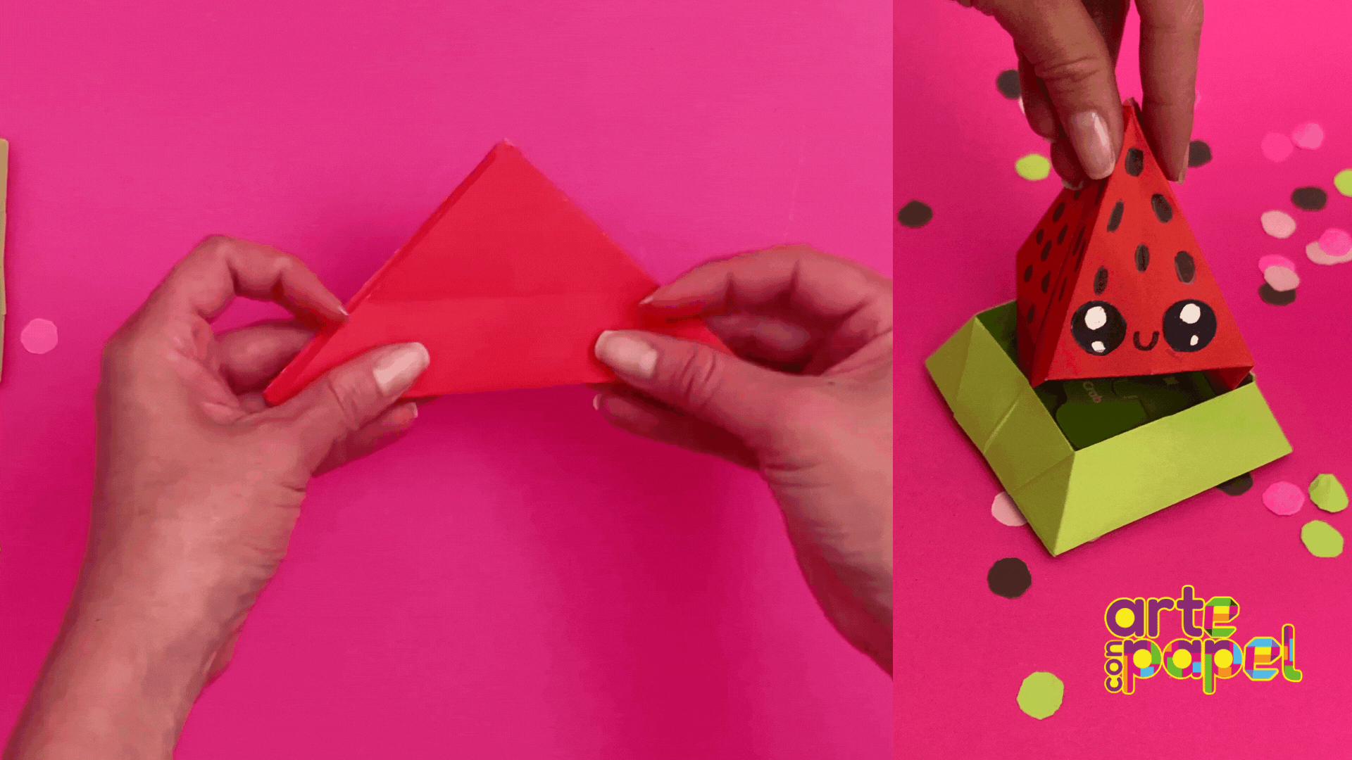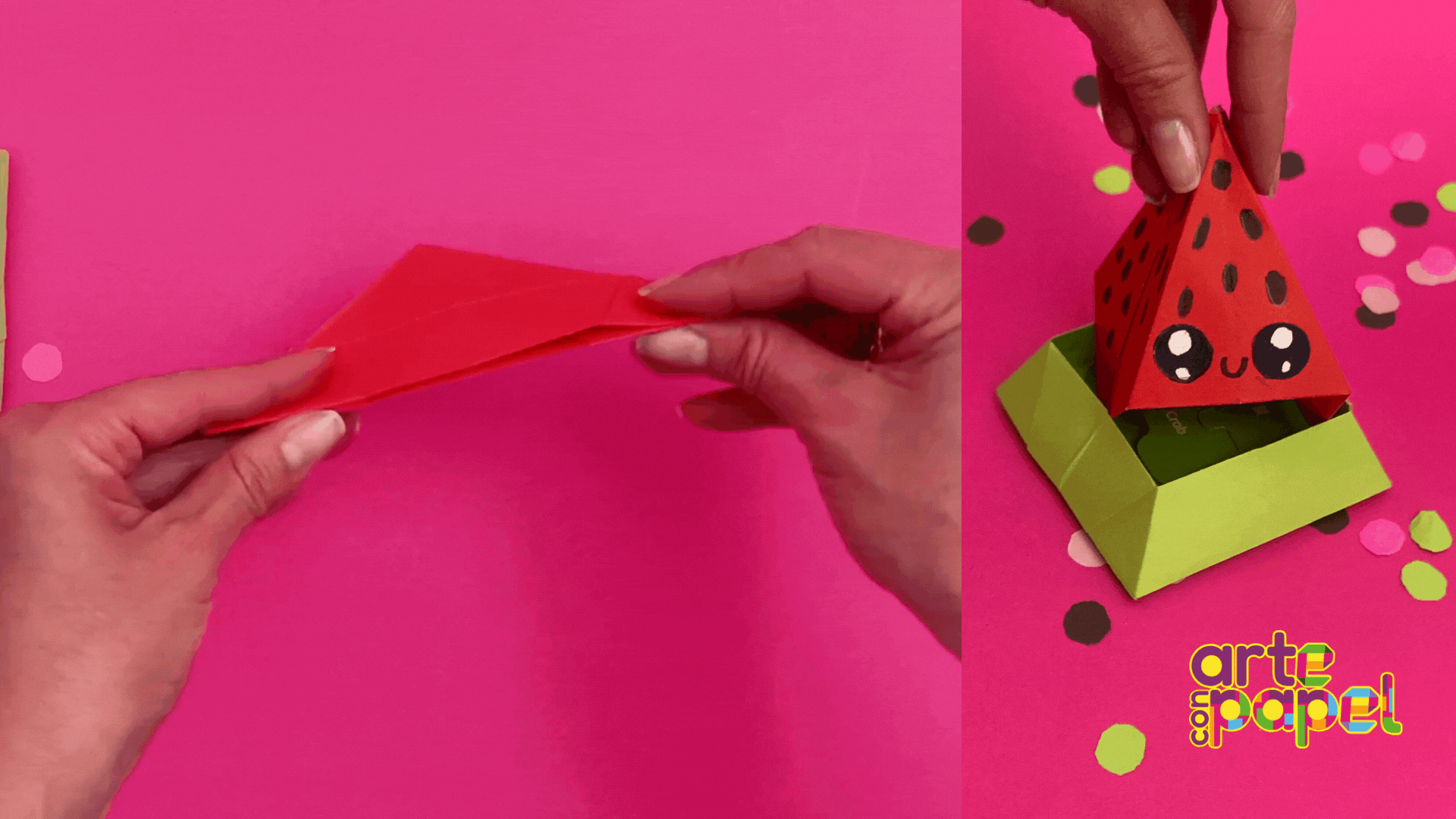 Jala ligeramente la parte inferior de la figura y ábrela hasta tener una base profunda. Corta otro cuadrado de 21x21 cm y repite el paso 1 y 2.