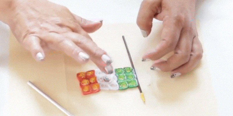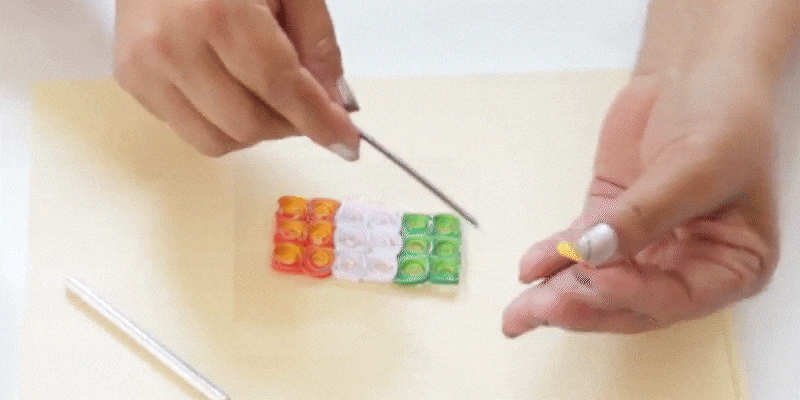 Realiza rollitos en colores verde, blanco y rojo. Sella con un poco de pegamento.