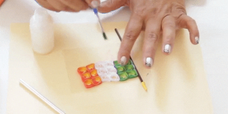 Dale forma ondulada a la bandera y aplica pegamento blanco para fijarla.