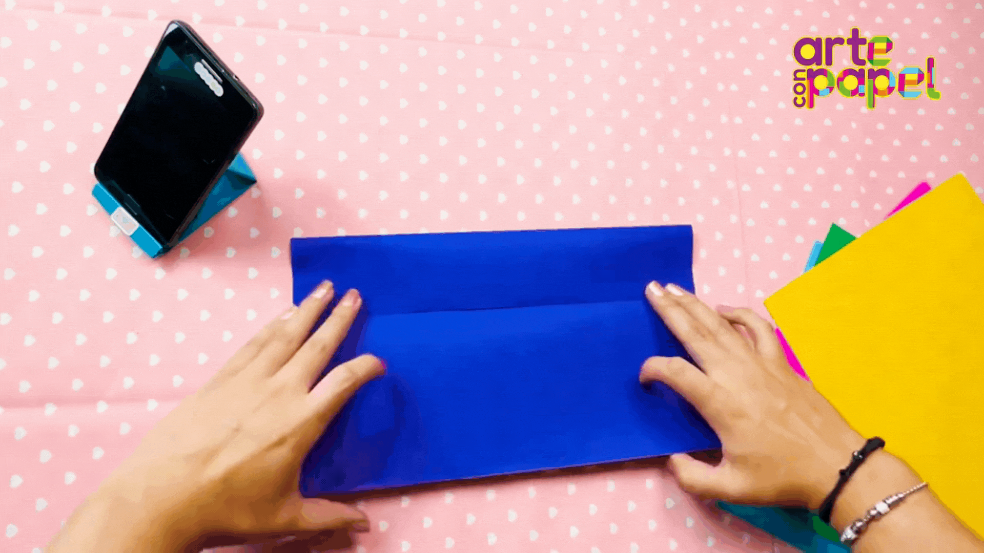 Dobla la hoja por la mitad y luego dobla los bordes al centro