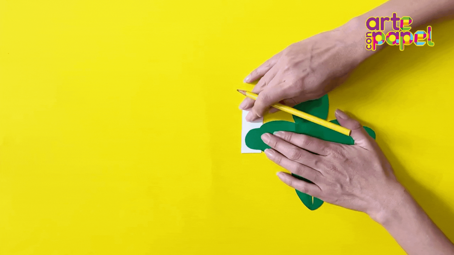 Siguiendo la pestaña que cierra la figura, marca el contorno en una cartulina roja y recorta