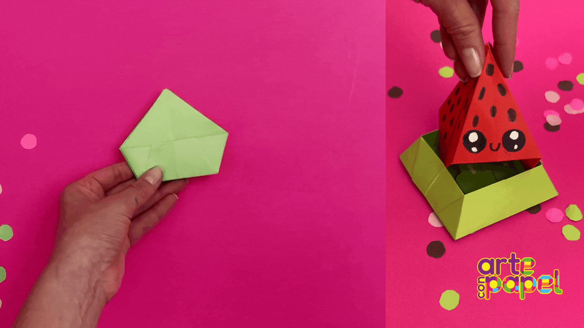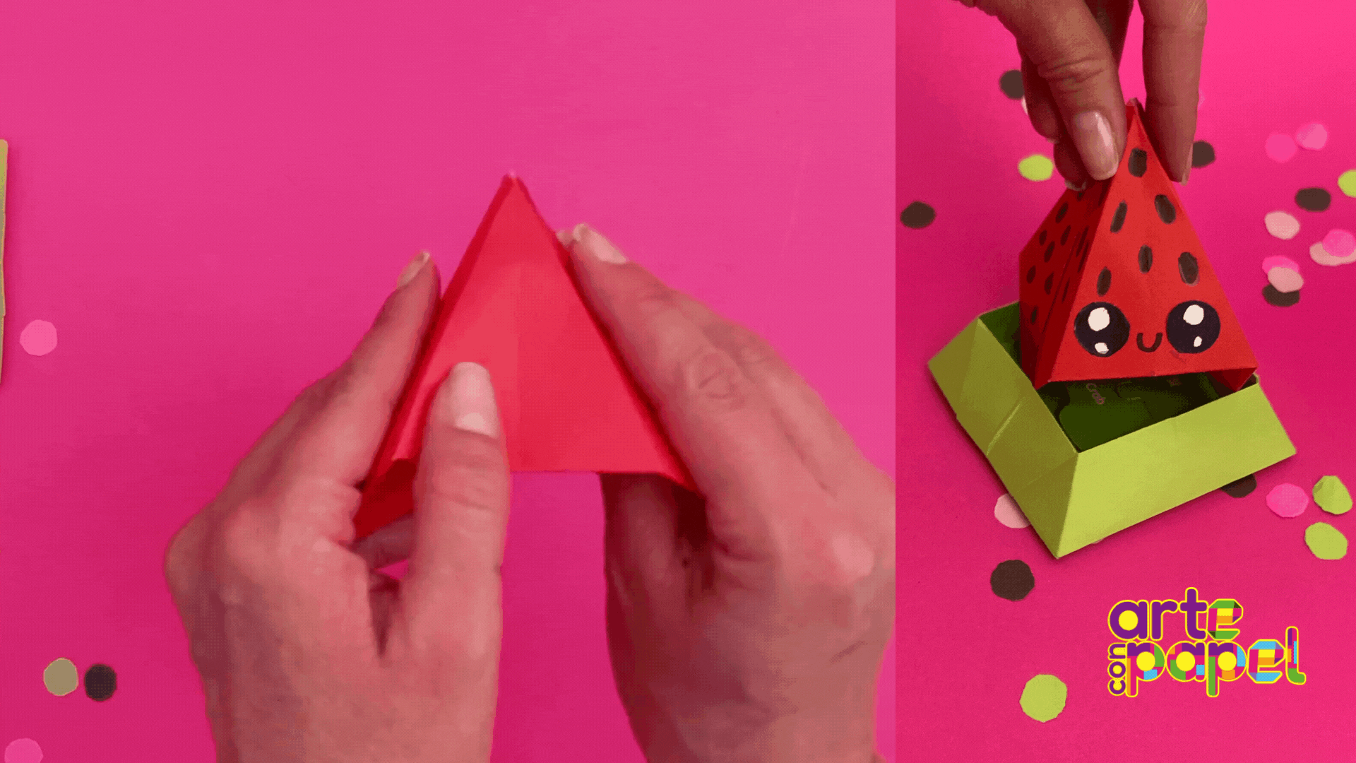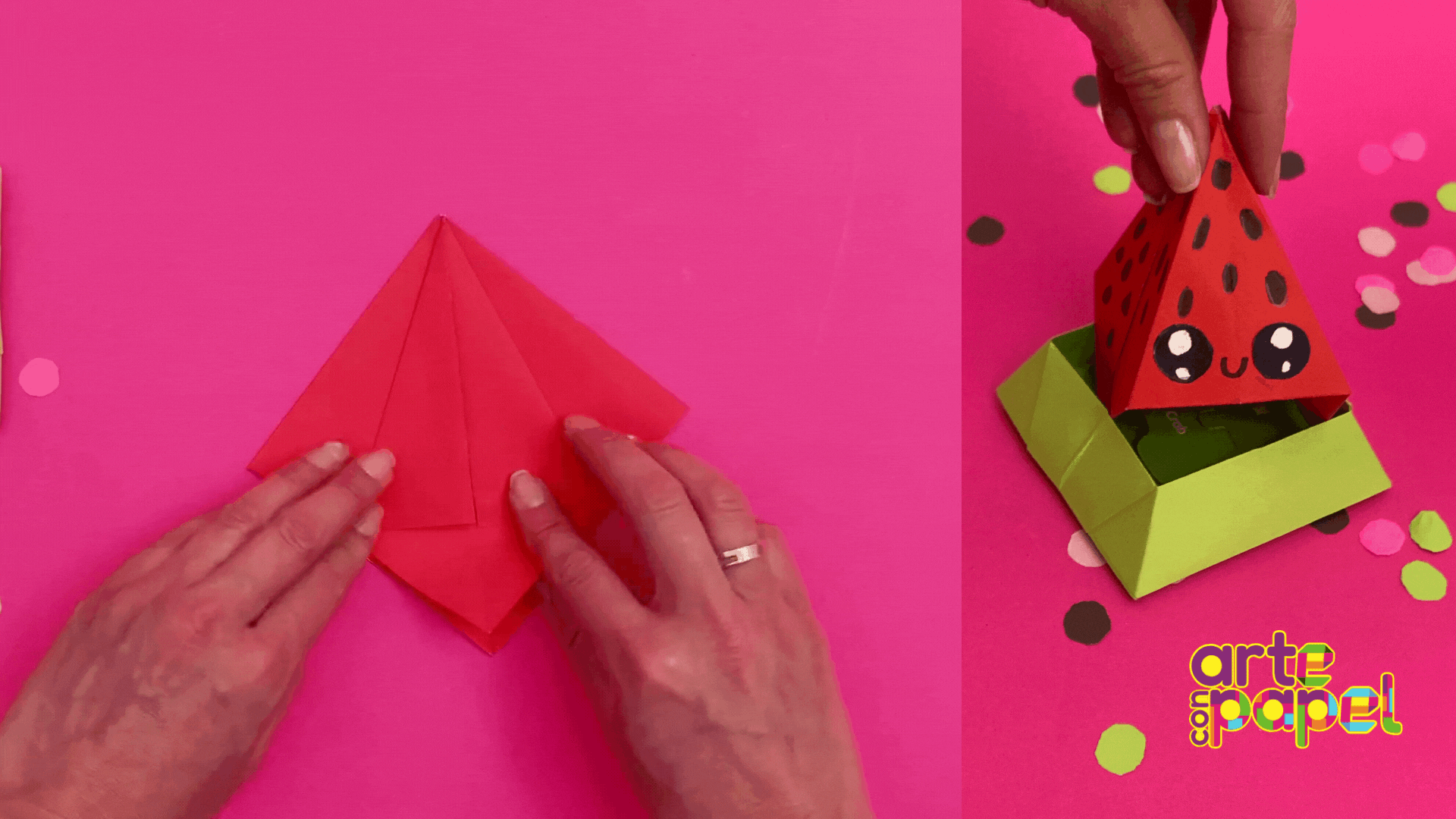 Sube los triángulos de los extremos, voltea la figura y repite del otro lado. Abre lentamente la figura y mete con cuidado las orillas.