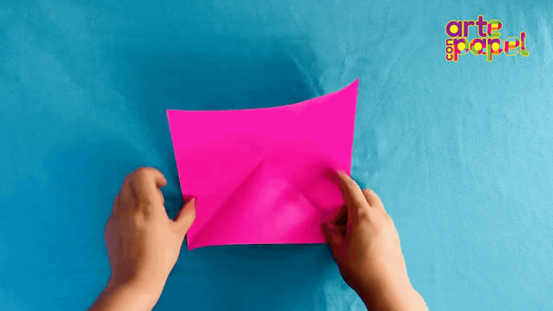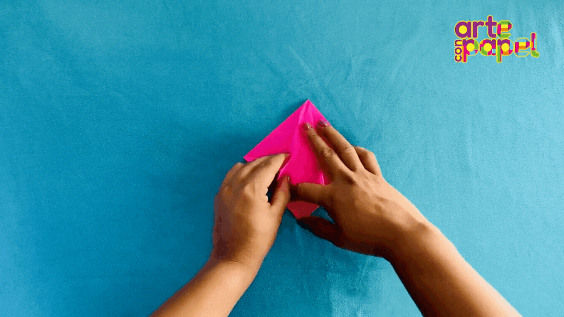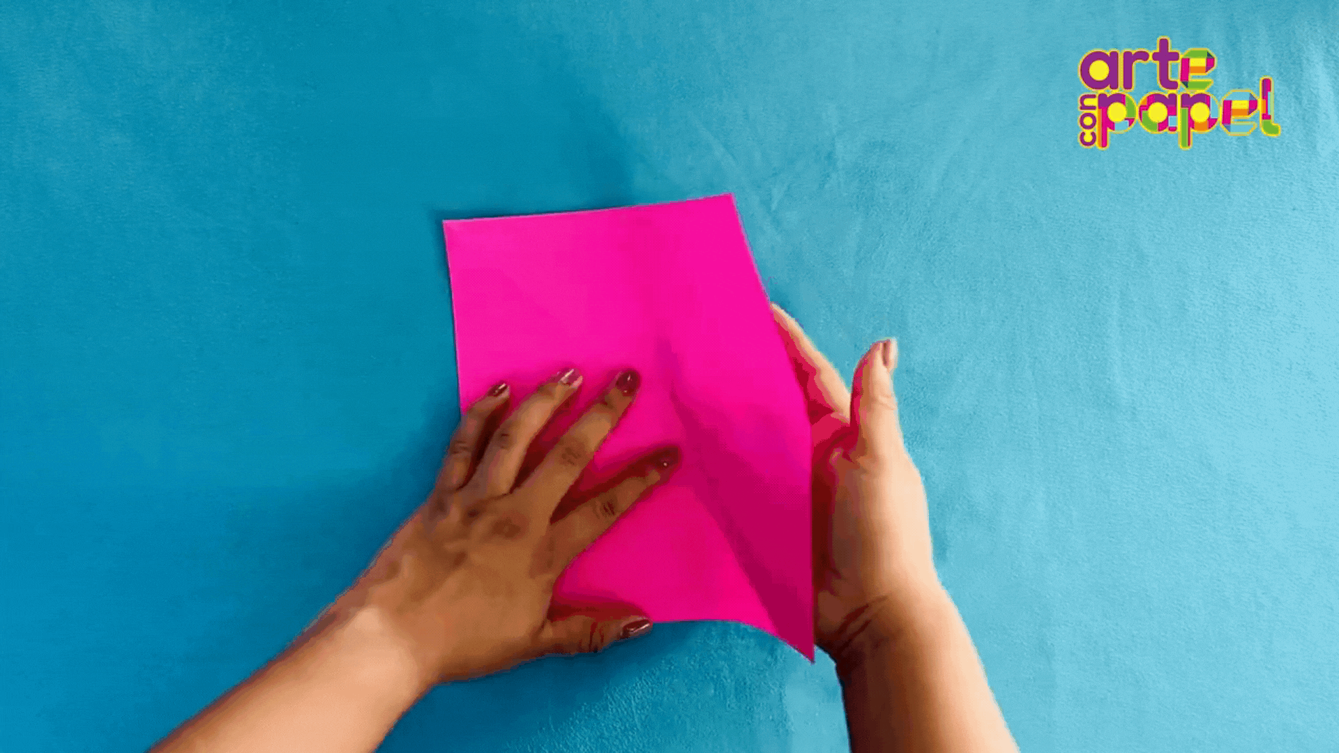Dobla la hoja de 14x14 cm de manera diagonal de ambos lados
