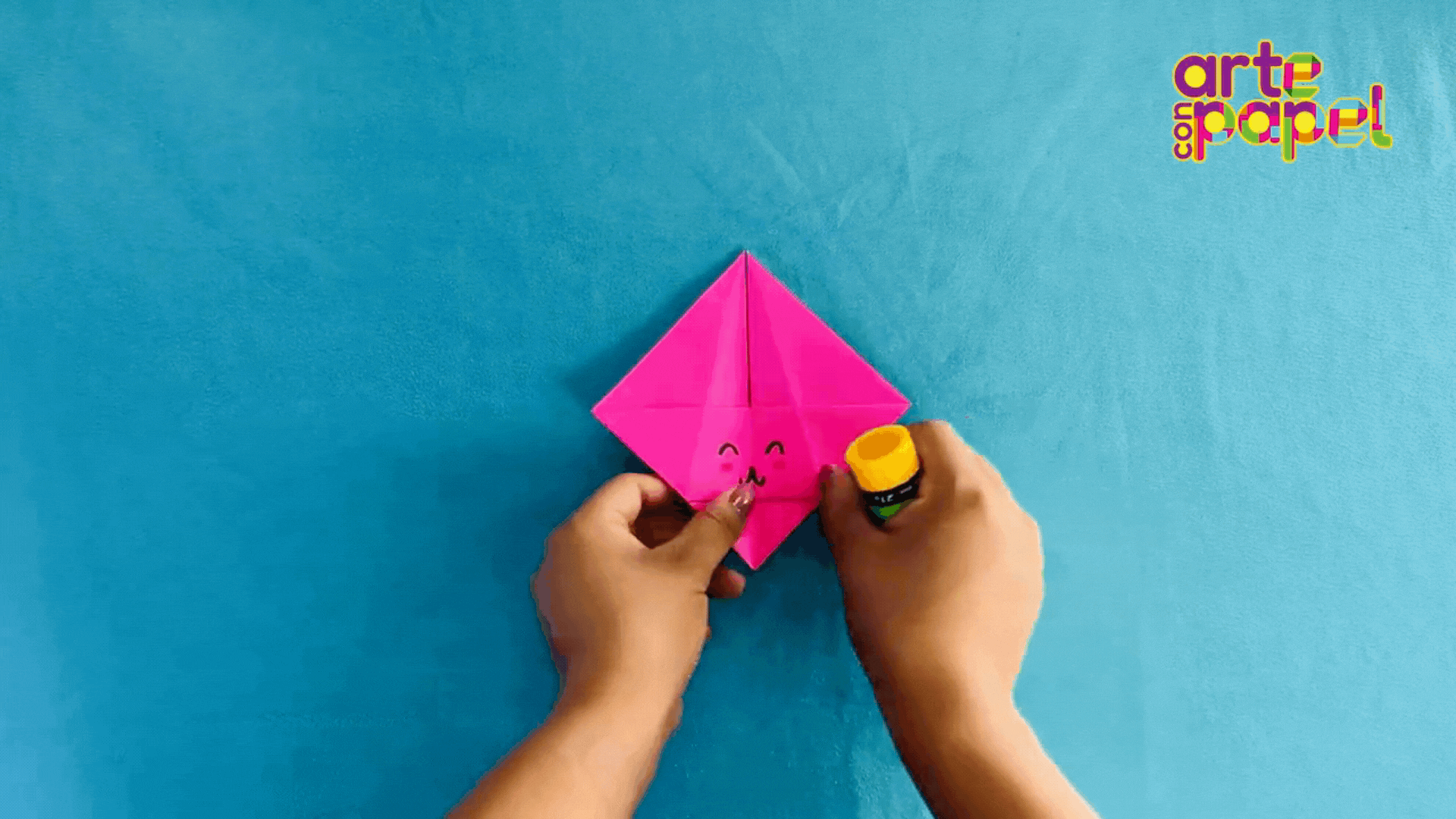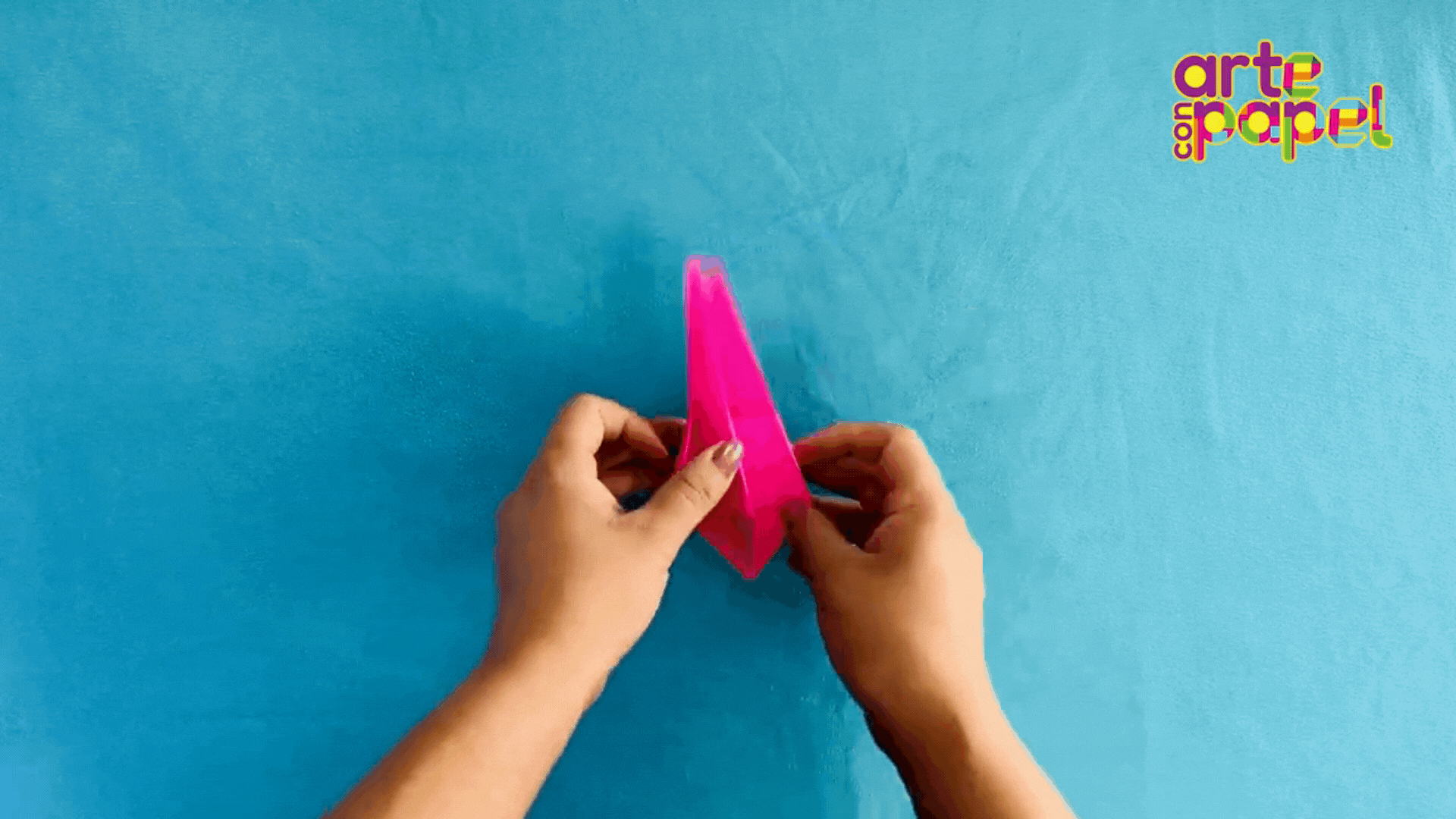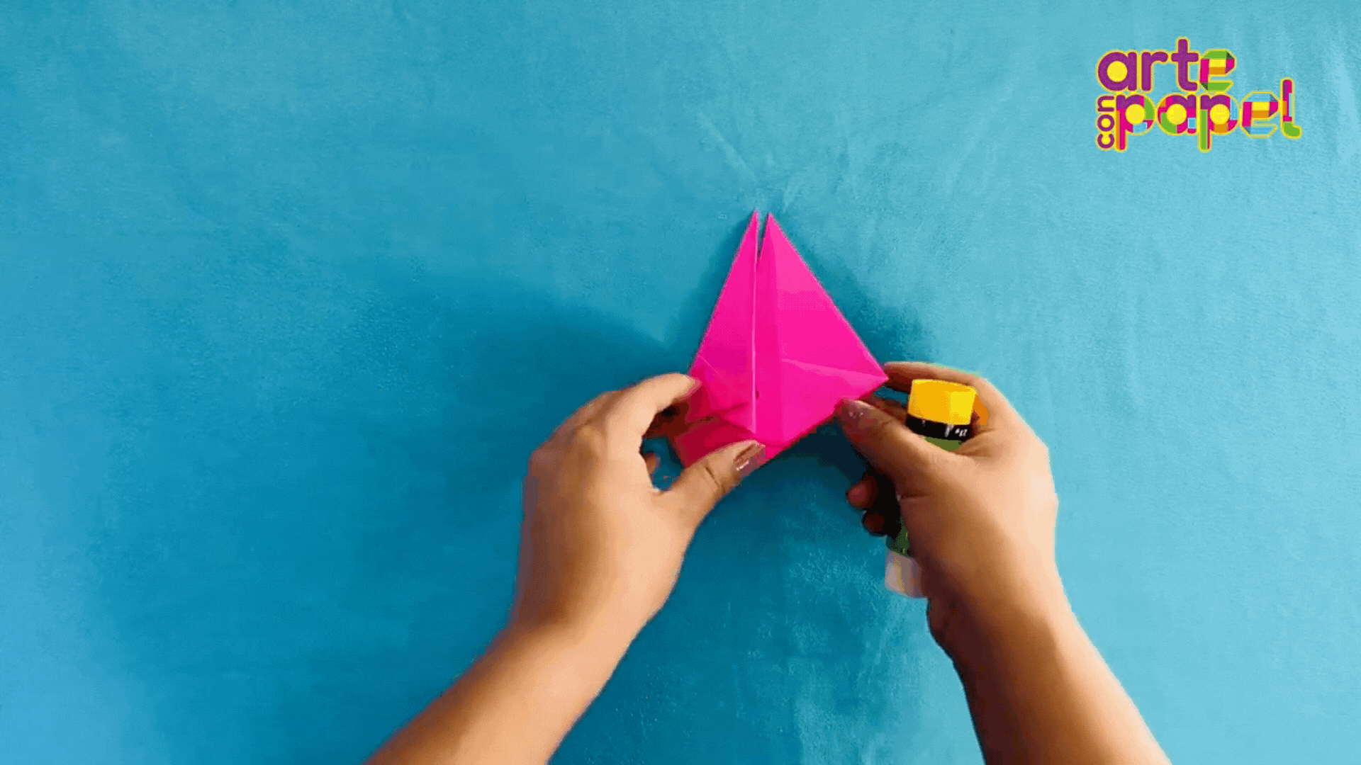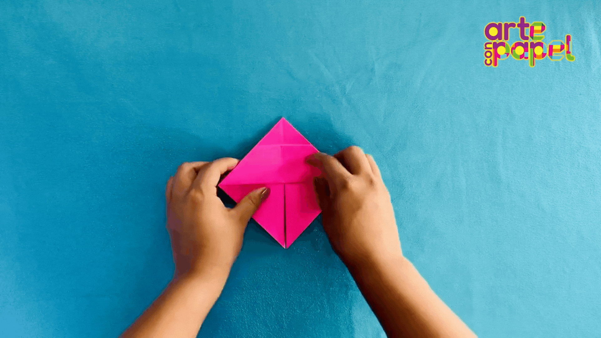 Dobla la hoja de 14x14 cm de manera diagonal de ambos lados