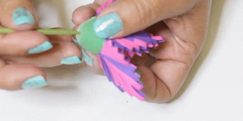 Pega las hojas en el tallo y ¡listo! Puedes hacer un ramo de flores.