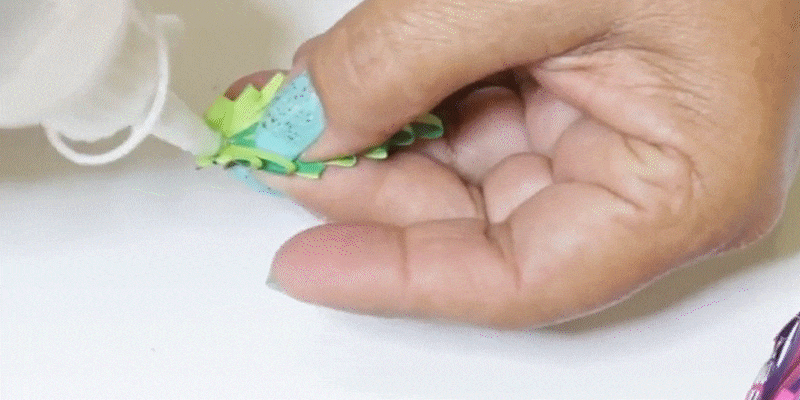 Con ayuda de un enrollador, haz un rollito con la tira que acabas de hacer.