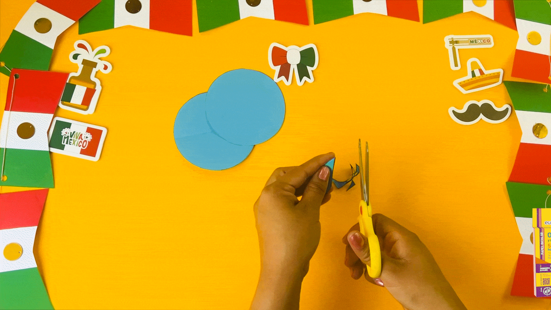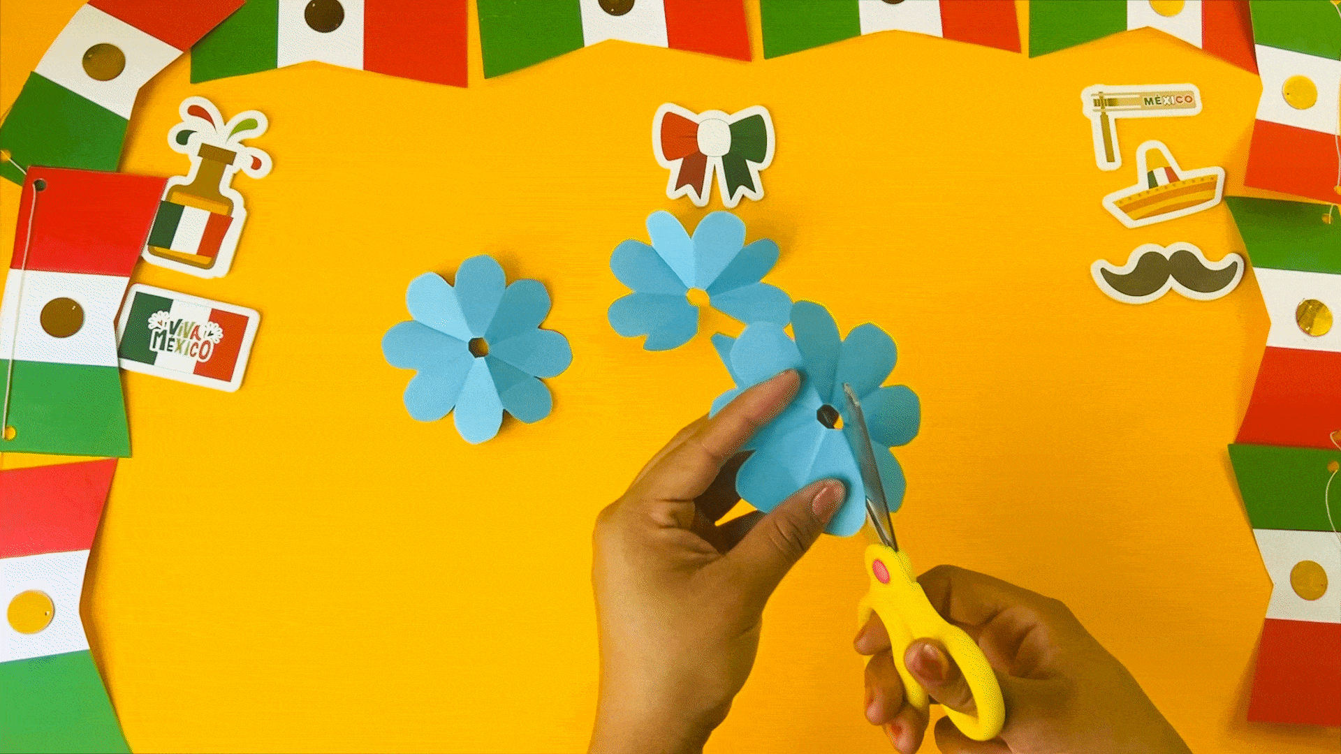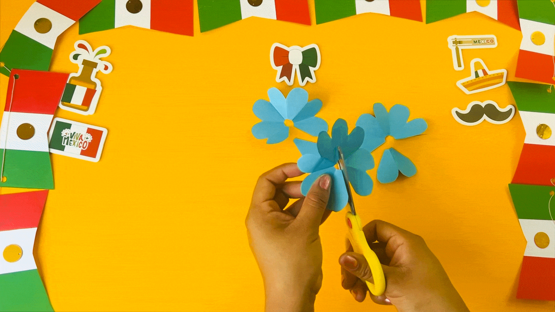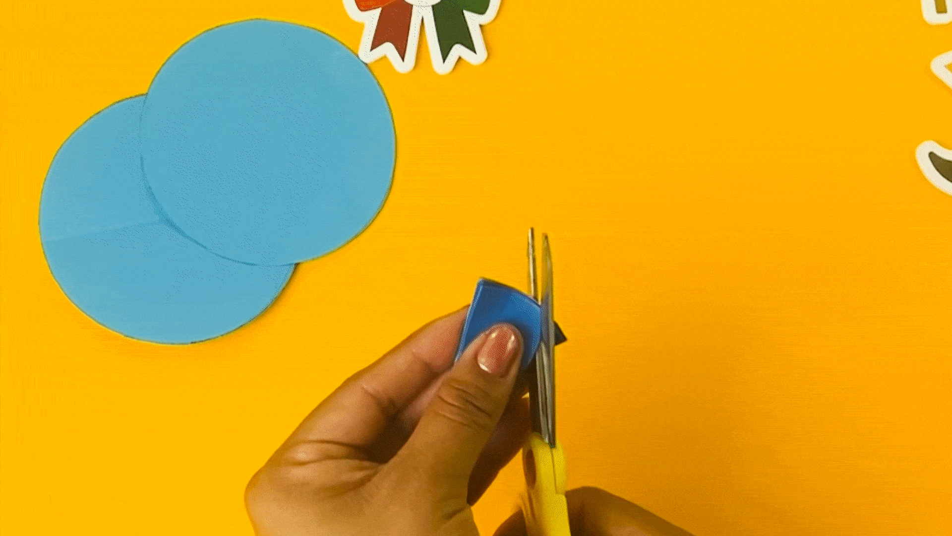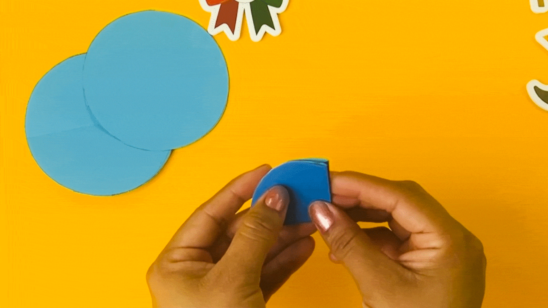 Para crear las flores, comienza cortando círculos de 5 cm de diámetro y dóblalos en 8 partes.