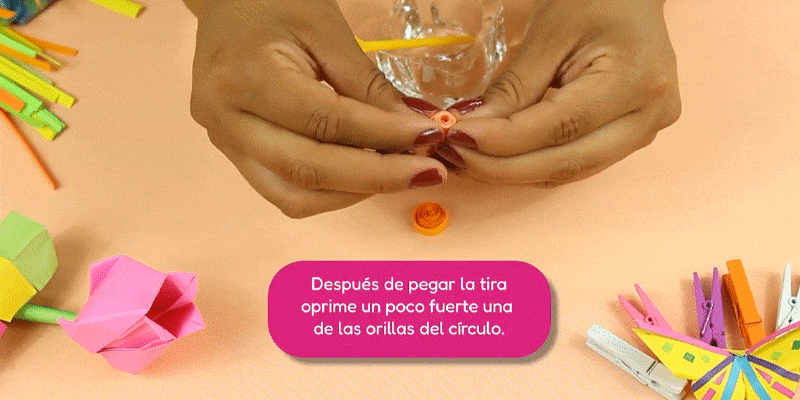 Enrolla la tira sin aplicar demasiada presión y al terminar el rollo, presiona ligeramente uno de los lados