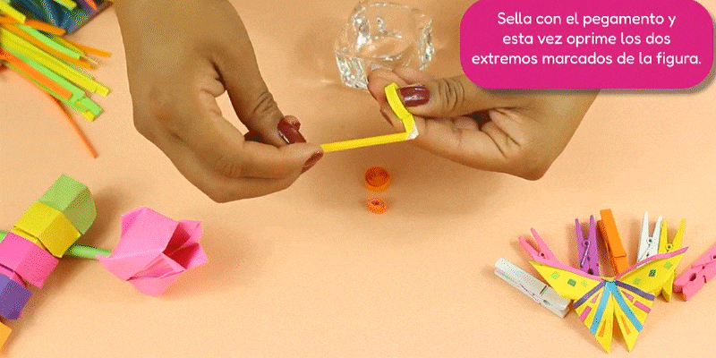 Dobla la tira de filigrana en segmentos de 1 cm varias veces del mismo tamaño y sella con pegamento .