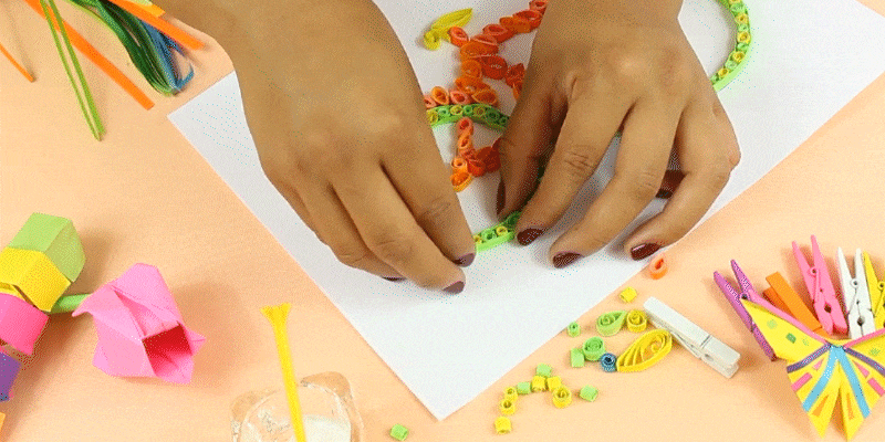 Repite el paso anterior aplicando más presión al enrollar y pega la filigrana aplicando presión para crear una gota.