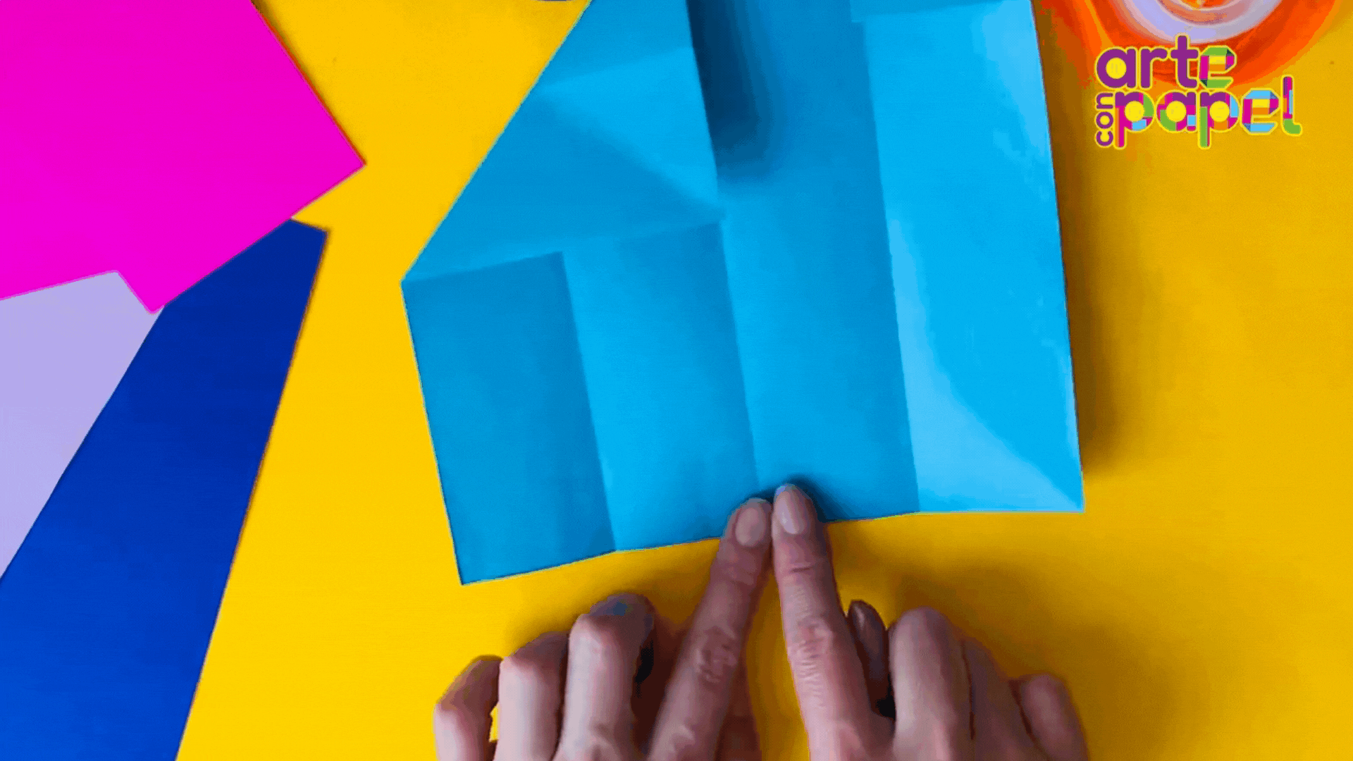 Dobla por la mitad un cuadrado de 25x25 cm, abre la hoja y lleva cada extremo al centro.