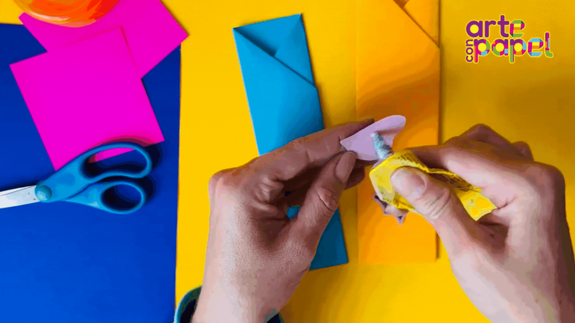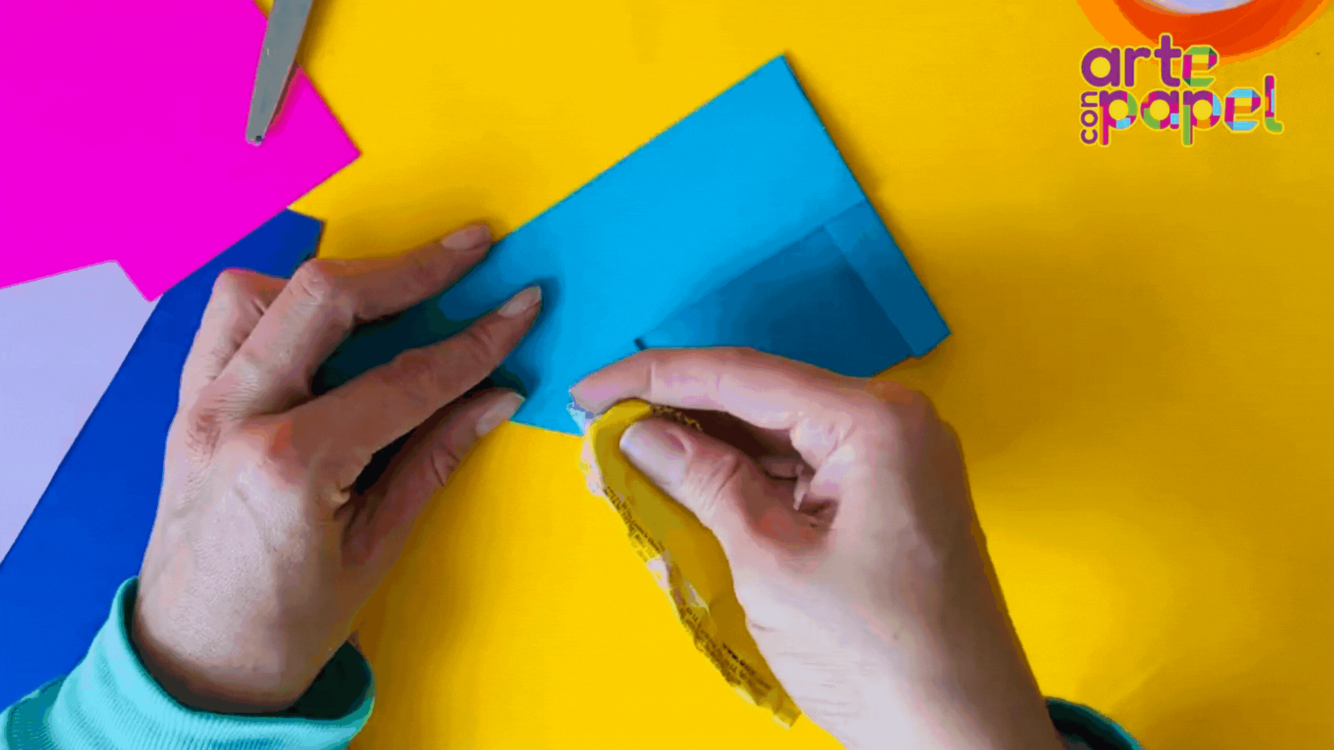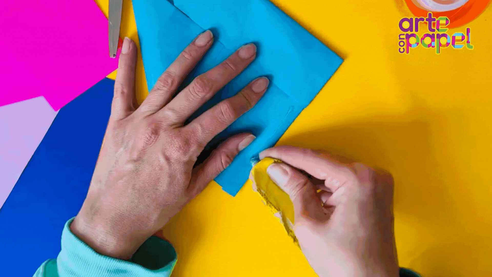 Coloca pegamento en el sobrante del lado izquierdo y llévalo hacia la derecha.