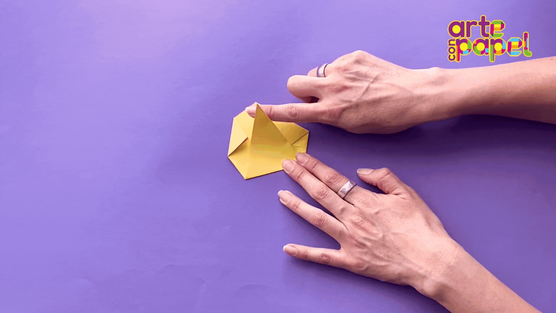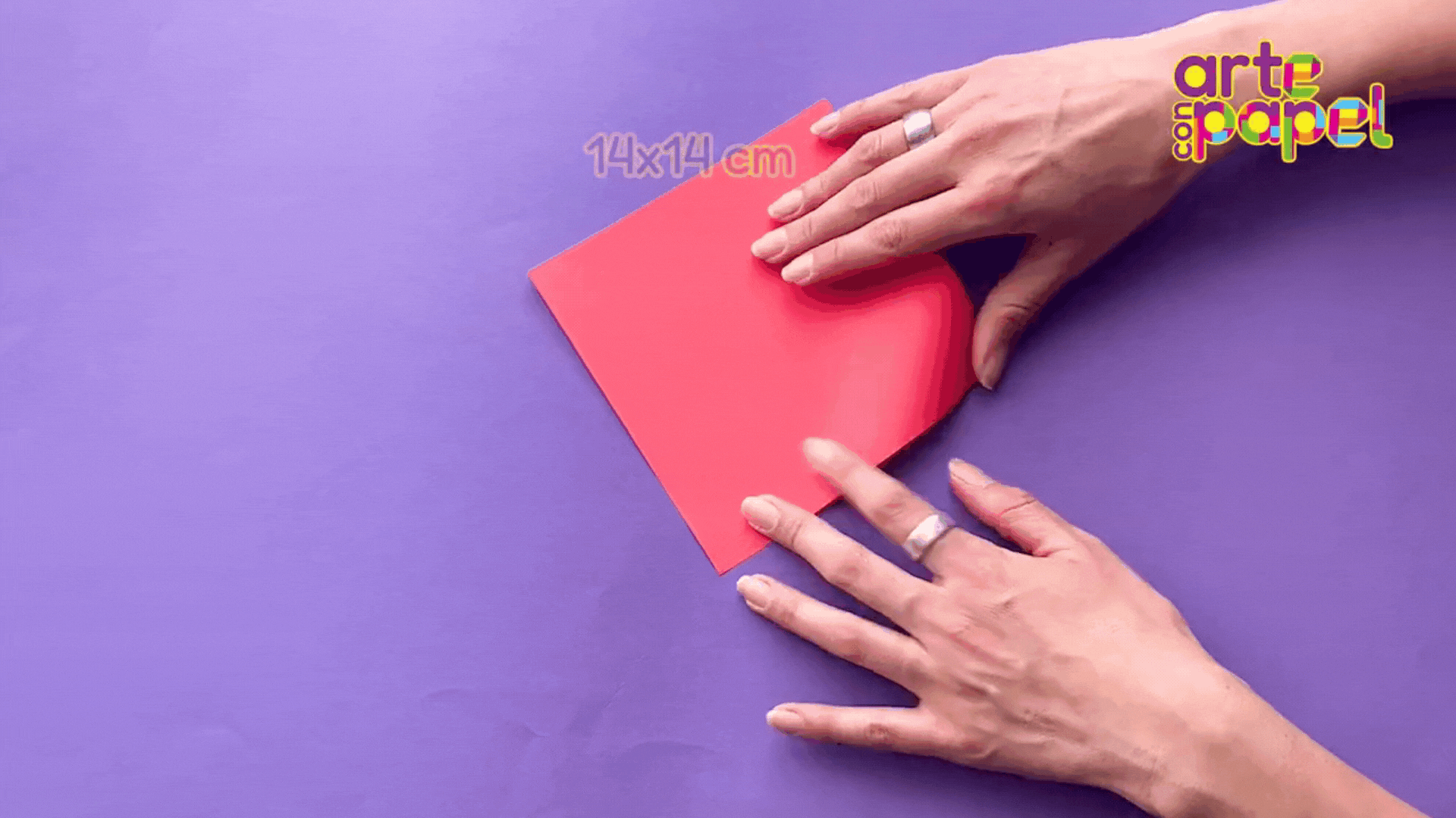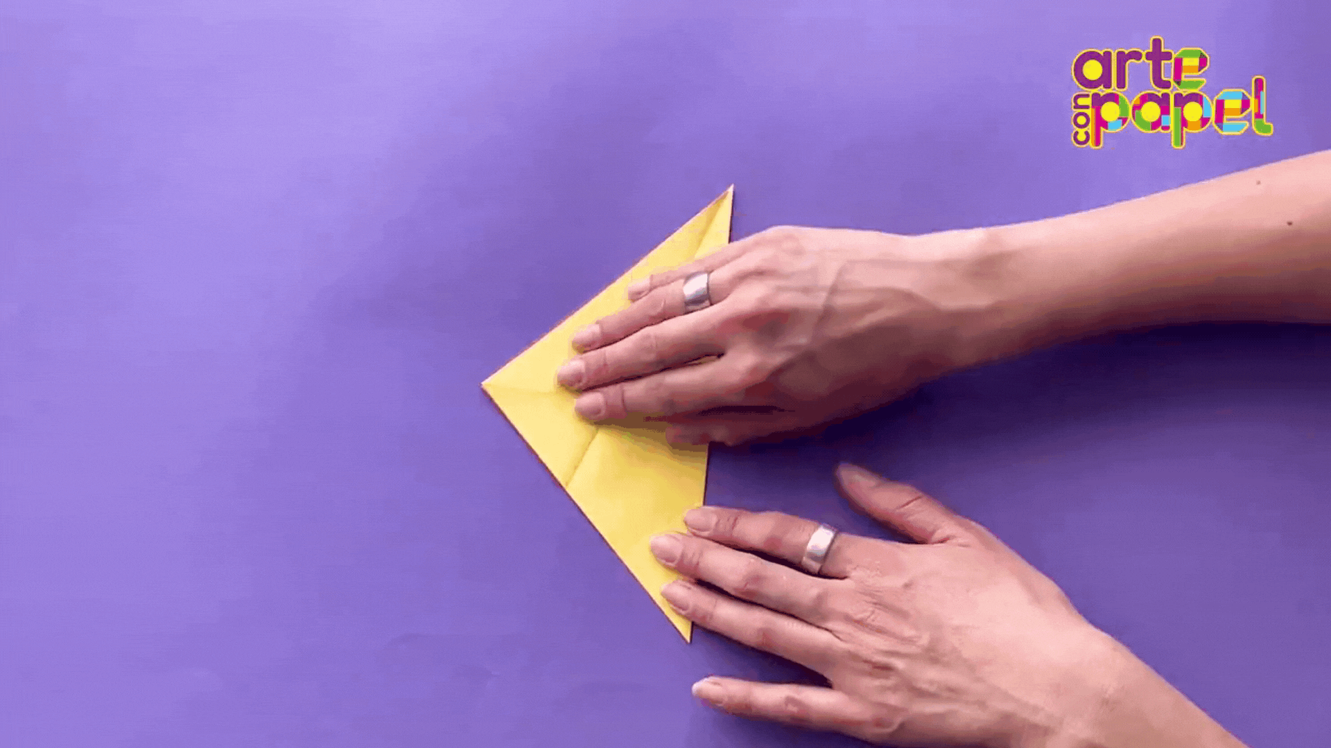 Dobla los dos lados más largos hacia afuera: haciendo un dobles en horizontal y otro diagonal