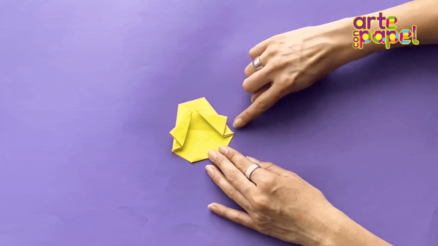 Dobla la hoja en diagonal por ambos lados y luego dobla una esquina hacia afuera