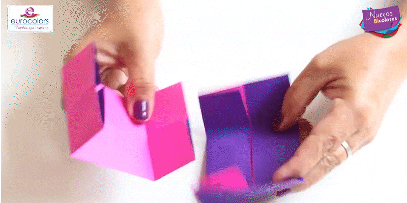 Toma dos cuadrados abiertos y colócalos uno encima del otro.