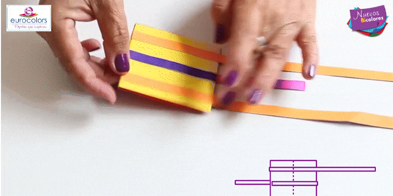 Toma dos tiras y pégala en los laterales. Asegúrate de pegarla en dirección contraria a la tira del centro.