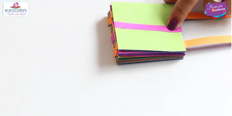 Apila un cuadrado sobre el otro y pega las tiras de un cuadrado sobre el otro. No olvides contar los sobrantes.