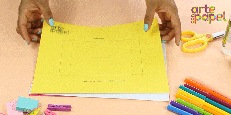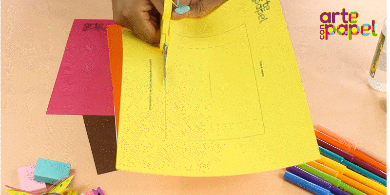 Con unas tijeras, corta la línea que atraviesa la plantilla de la portada.
