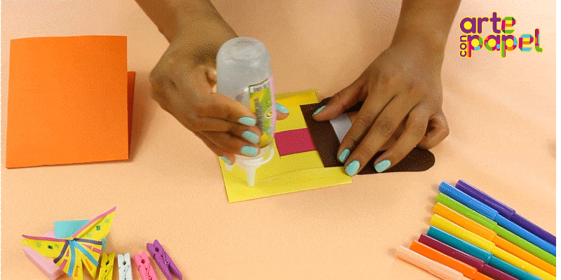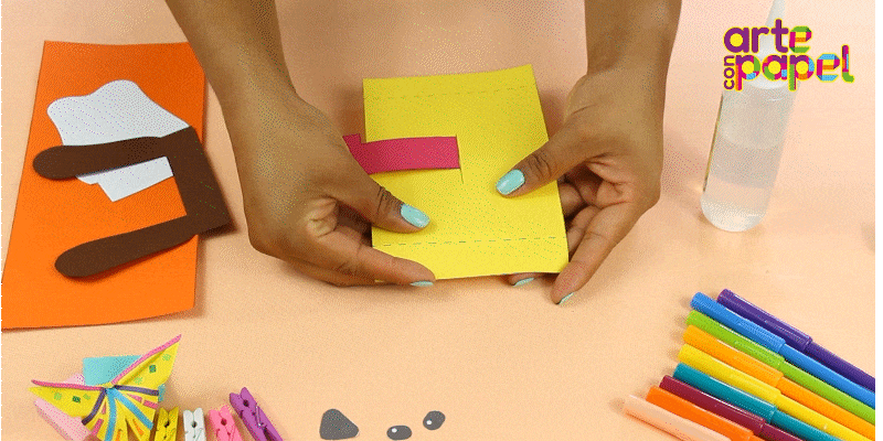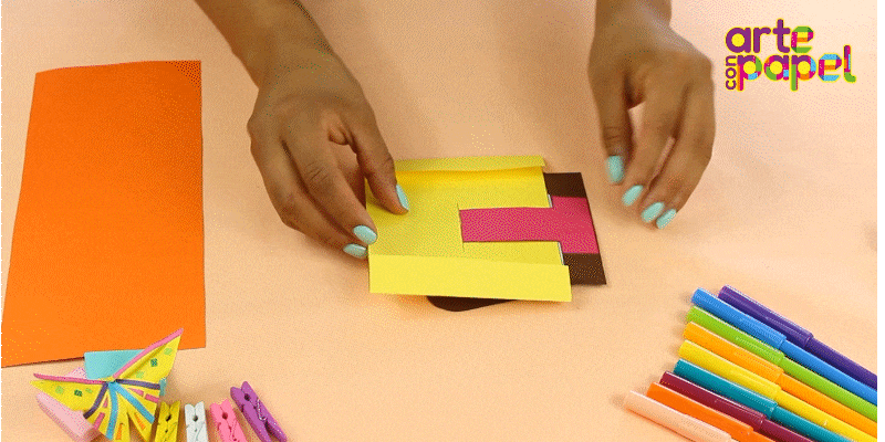 Dobla la tarjeta (plantilla naranja) a la mitad.